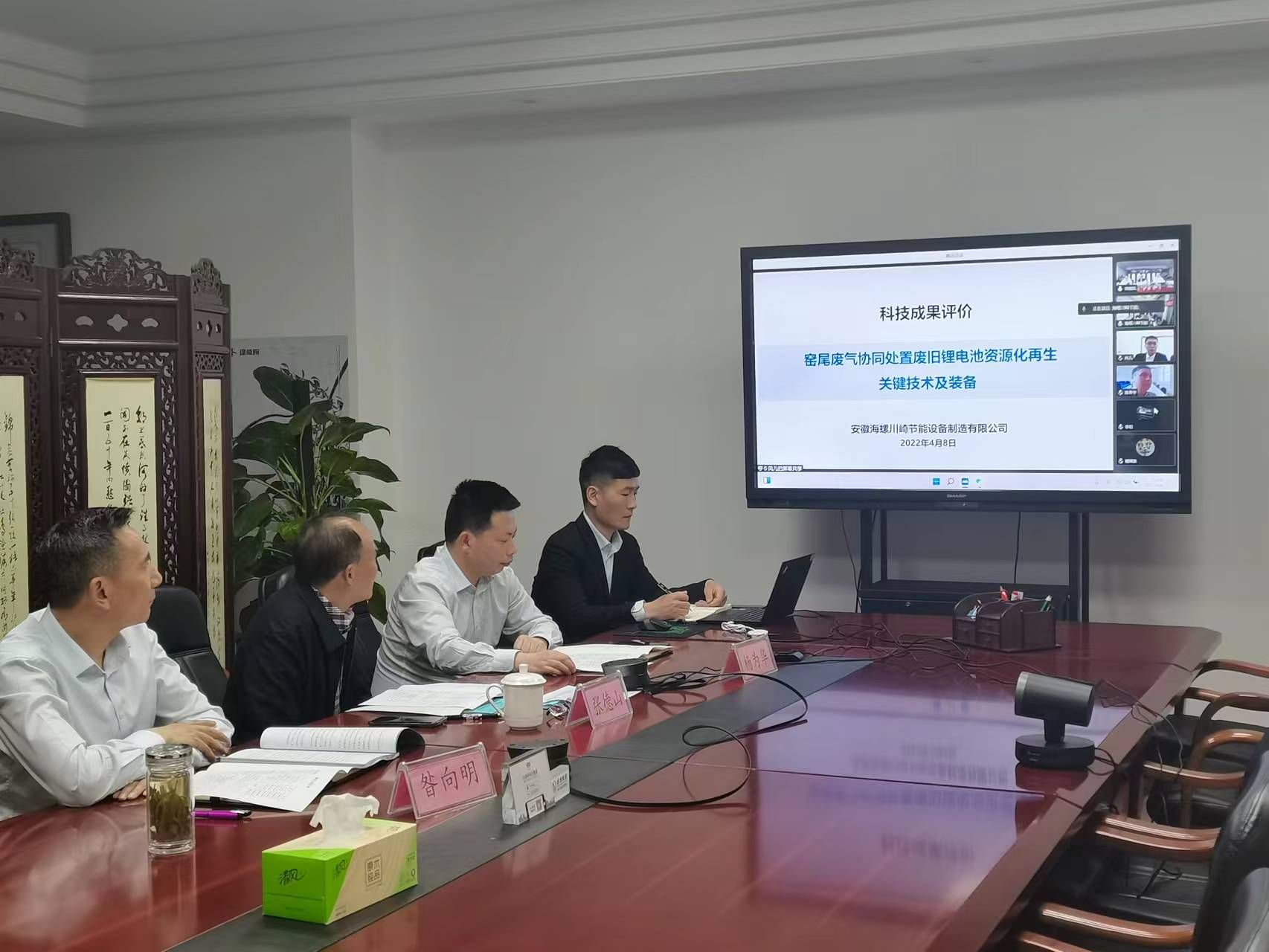 ??2022年4月8日,安徽綠能技術研究院有限公司服務的安徽海螺川崎節(jié)能設備制造有限公司創(chuàng)新研發(fā)成果,經(jīng)安徽工業(yè)經(jīng)濟聯(lián)合會科技成果評價中心組織中國科學技術大學、合肥工業(yè)大學、安徽大學、中國循環(huán)經(jīng)濟協(xié)會、中國工業(yè)節(jié)能與清潔生產(chǎn)協(xié)會、合肥學院等單位6位專家評議,“窯尾廢氣協(xié)同處置廢舊鋰電池資源化再生關鍵技術及裝備”達到國內(nèi)領先水平。