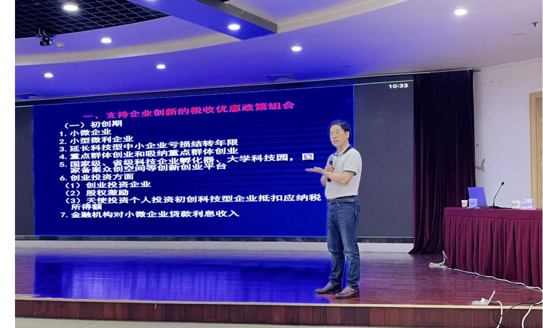 張金海調(diào)研員以“創(chuàng)新企業(yè)所得稅優(yōu)惠政策解讀”為題,深入淺出地講述了新型國有體制下稅務體制和財稅政策對科技創(chuàng)新發(fā)展的引導及推動作用,向與會人員介紹了企業(yè)各成長階段適用的各項優(yōu)惠政策及其注意事項。他指出:“企業(yè)既要開展科技創(chuàng)新,合理歸集研發(fā)活動,也要積極享受國家稅收政策;同時對皖北煤電發(fā)展提出兩點建議:一方面要響應國家戰(zhàn)略,積極打造新型研發(fā)機構(gòu);另一方面要著手基礎應用研究,重視自主研發(fā),打造原創(chuàng)知識產(chǎn)權體系,爭創(chuàng)國有企業(yè)原創(chuàng)技術策源地。”
