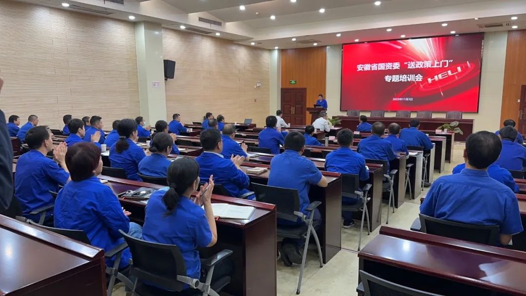 2023年11月3日,安徽綠能技術(shù)研究院有限公司(簡稱“綠能院”)為落實安徽省國有資產(chǎn)監(jiān)督管理委員會《關(guān)于在省屬企業(yè)開展“送政策上門”專項工作的通知》文件精神,赴安徽叉車集團有限責任公司(簡稱“安徽叉車集團”)開展專題培訓。安徽叉車集團領導及高管、技術(shù)中心全體中層管理人員及其他職能部門主要負責人參加了本次會議,安徽省稅務局企業(yè)所得稅處一級調(diào)研員張金海、綠能院院長昝向明、執(zhí)行院長苗紅民、副總工程師劉杰等一行參加會議。
