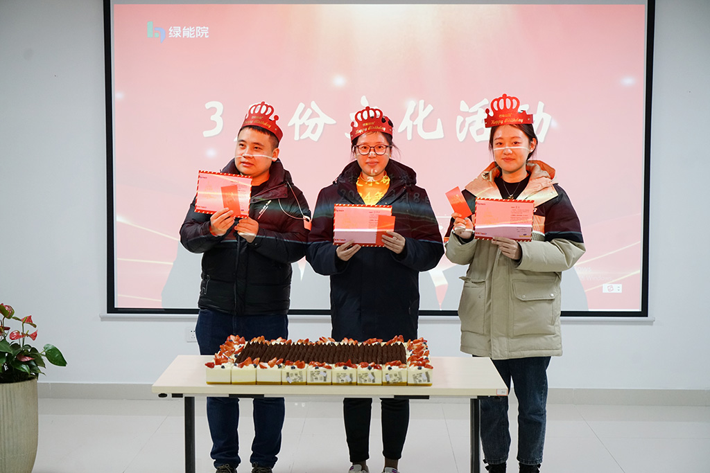 首先進(jìn)行的第一重“驚喜”是月度集體生日會(huì)。綠能院為三月份過生日的員工精心準(zhǔn)備了生日賀卡和禮盒,并定做了可供全體員工分享的生日蛋糕,在員工間傳遞這份喜悅與祝福。
