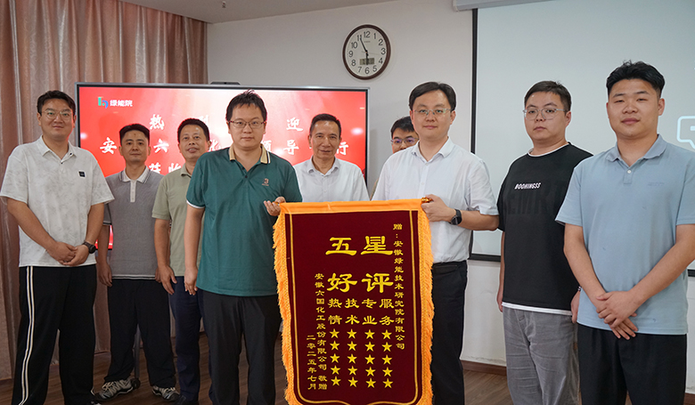安徽綠能技術(shù)研究院有限公司(簡稱:綠能院)服務(wù)的六國化工股份有限公司(簡稱:六國化工,股票代碼:600470)副總工程師蔣良虎、技術(shù)中心綜合部部長陳明、主管熊秀峰一行于2025年7月17日頂著酷暑赴綠能院座談交流并送錦旗。