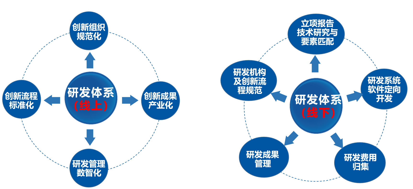 研發(fā)體系——?jiǎng)?chuàng)新組織規(guī)范化、流程標(biāo)準(zhǔn)化、成果應(yīng)用化、管理數(shù)智化,實(shí)現(xiàn)研發(fā)立項(xiàng)“人、機(jī)、料、費(fèi)”等要素精準(zhǔn)匹配、研發(fā)過程管理規(guī)范及研發(fā)費(fèi)用歸集合理合法。